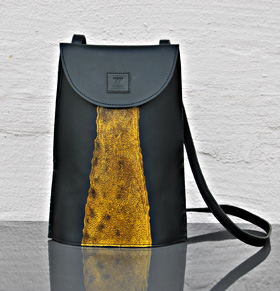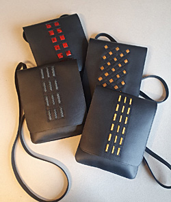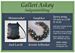 | 29.mars stilte Kristin Selboskar og jeg ut i Galleri Askøy. Se bilder fra utstillingen.  | Nye vesker jeg viser på utstillingen. Denne kaller jeg "Østen".   | Modell "På Skrå".   |