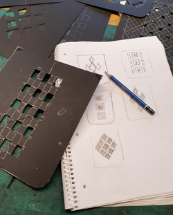 | Nye modeller.  | Ny modell med selskinn   | På egne ben.   | Modell Kvart. Brun, svart og beige. Kr. 1800.- Regulerbar hank.  | Modell Kvart,beige. 20cm.bred 22cm.høy.   | Modell Kvart, sort.   | Modell Duo. Kr 2300.-  | Skjærer åpninger i skinnet og legger fiskeskinn bak   | skisser og forarbeid må til.   | Liten veske med flettelokk. Kr. 1600.-  | Disse veskene lager jeg i utallige variasjoner. Svart, brun eller muldvarp som hovedfarge.   | Flettelokket kan jeg også
