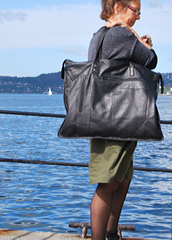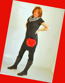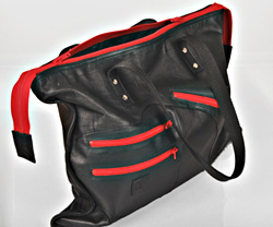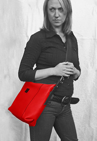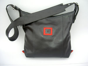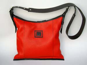 Og her viser jeg modell Klipp som skulderveske med røde glidlås. Se ellers disse veskene under menyen "Store vesker" |