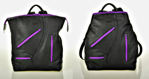 | Modell Klipp i forskjellige utgaver  | Modellen Klipp ryggsekk her med lilla glidlås. Kan brukes brettet med lås bak eller "åpen" når man skal ha med seg større ting.   | Og her viser jeg modell Klipp som skulderveske med røde glidlås. Se ellers disse veskene under menyen "Store vesker" |