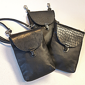 | Stor veske i mykt skinn. Kr. 2900.- | En liten vri på mine "gamle" populære ryggsekker.   | Og enda en.   |
