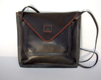 Konvoluttveske. Har hatt endel etterspørsel etter denne modellen, og har derfor laget opp noen eksemplarer. Denne gangen har jeg også montert en kort hank til skulder. Kr.1500