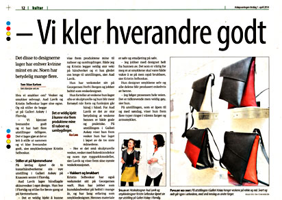 Kristin Selboskar, sølvsmykker, og jeg med vesker. Avisomtale i Askøyværingen.