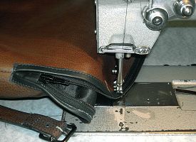 Selefestet er gjerne det svakeste punktet på en ryggsekk. De blir derfor festet med metall-nitter før de syes på sekken med maskinsøm. |